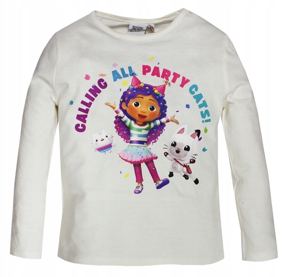 Praktyczna i wygodna bawełniana bluzka z długim rękawem i kolorowym nadrukiem Koci Domek Gabi.