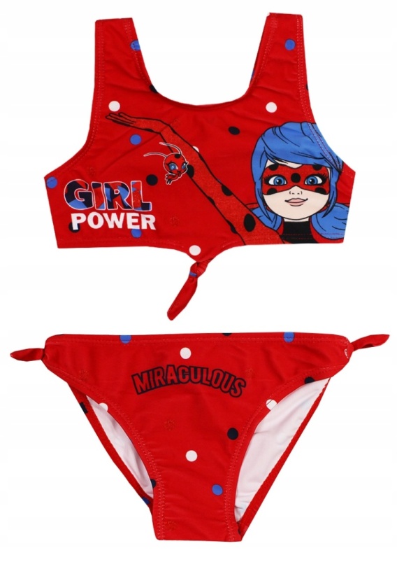 Dwuczęściowy strój kąpielowy z motywem Biedronka i Czarny Kot