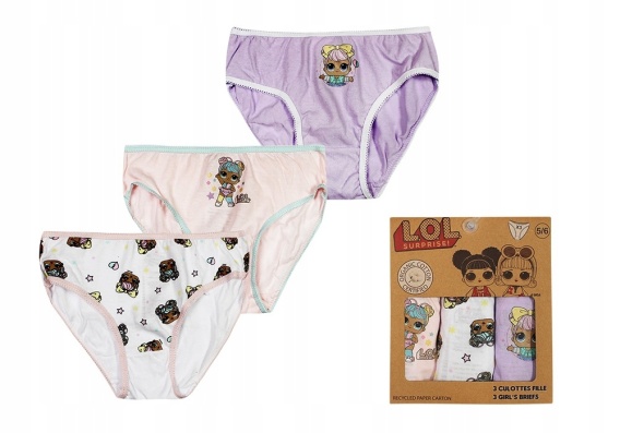 Trójpak licencjonowanych majtek dziewczęcych figi LOL Surprise z organicznej bawełny BIO.
