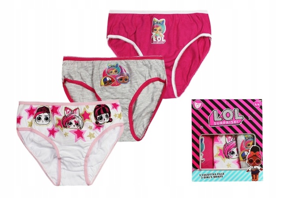 Trójpak dziewczęcych majtek LOL Surprise z miękkiej, organicznej bawełny BIO to wygodne i bezpieczne bielizna dla dzieci, ozdobiona kolorowymi nadrukami ulubionych bohaterek, idealna na co dzień i zapakowana w oryginalne opakowanie licencyjne.