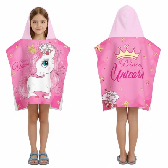 Poliestrowe ponczo kąpielowe z nadrukiem Jednorożec