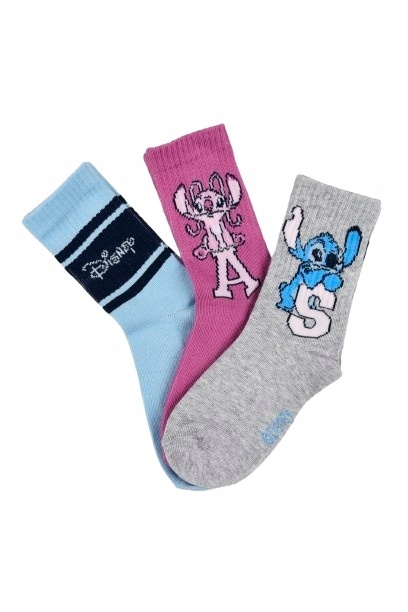 Zestaw 3 par skarpetek dziewczęcych LILO & STITCH - modne, wysokie