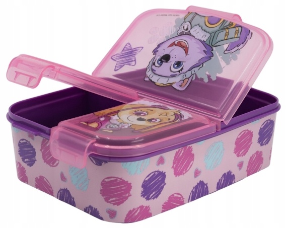 Oryginalna śniadaniówka Psi Patrol z trzema osobnymi przegródkami, wykonana z bezpiecznego materiału dopuszczonego do kontaktu z żywnością.