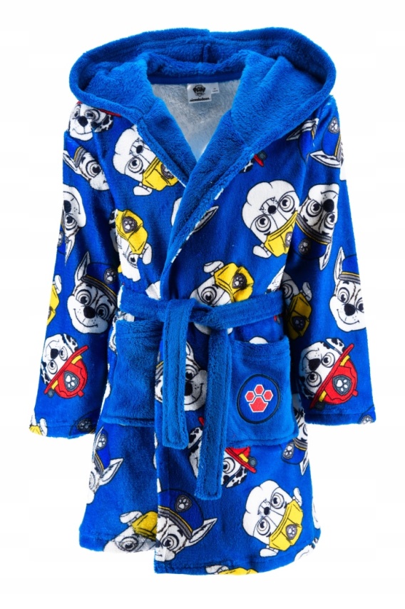 ciepły i mięciutki szlafrok z kapturem i kieszeniami Psi Patrol.