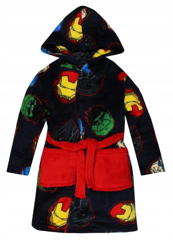 Szlafrok dla chłopca z kapturem Avengers to idealna propozycja dla małych fanów superbohaterów. Wykonany z wysokiej jakości materiałów, zapewniających komfort noszenia oraz trwałość produktu. Dzięki starannemu wykonaniu i dbałości o detale, szlafrok prezentuje się nie tylko stylowo, ale także jest funkcjonalny w użytkowaniu. Kaptur dodaje mu uroku i sprawia, że każde ubranie staje się bardziej przyjemne.